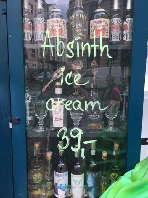 “In Prague. I taste-tested absinthe. It’s unbearably cute nickname—the “green fairy”—called to me.” I assume everyone knows it’s made with anise and fennel.