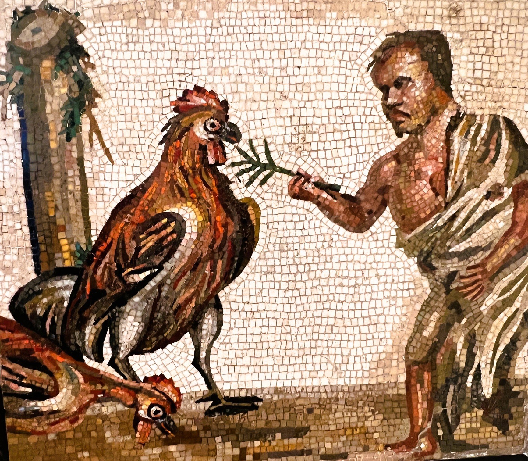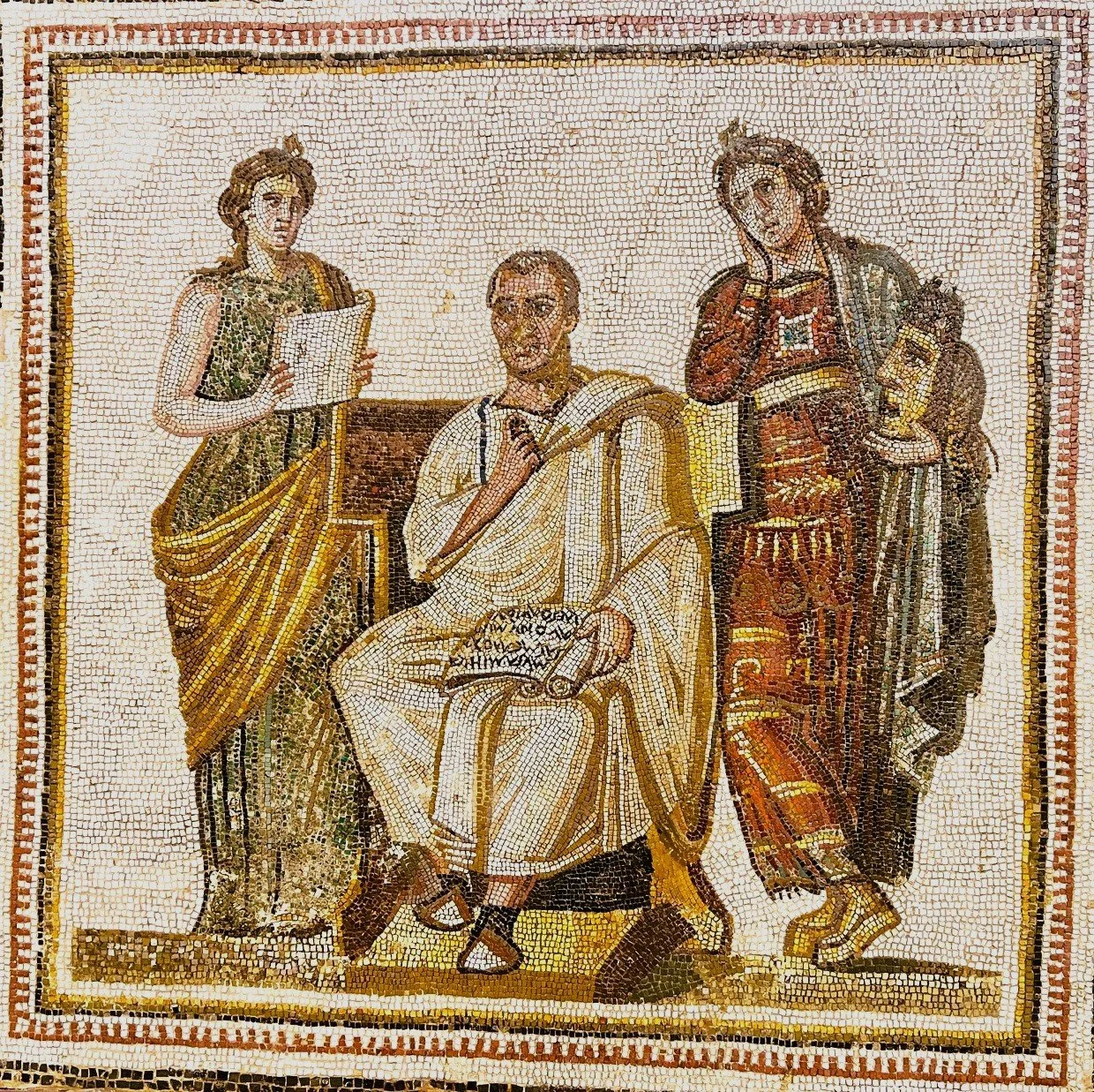 According to Brigitte, the museum’s crown jewel—its Mona Lisa—is the mosaic of Virgil writing The Aeneid. He’s flanked by the muses of history and tragedy.
