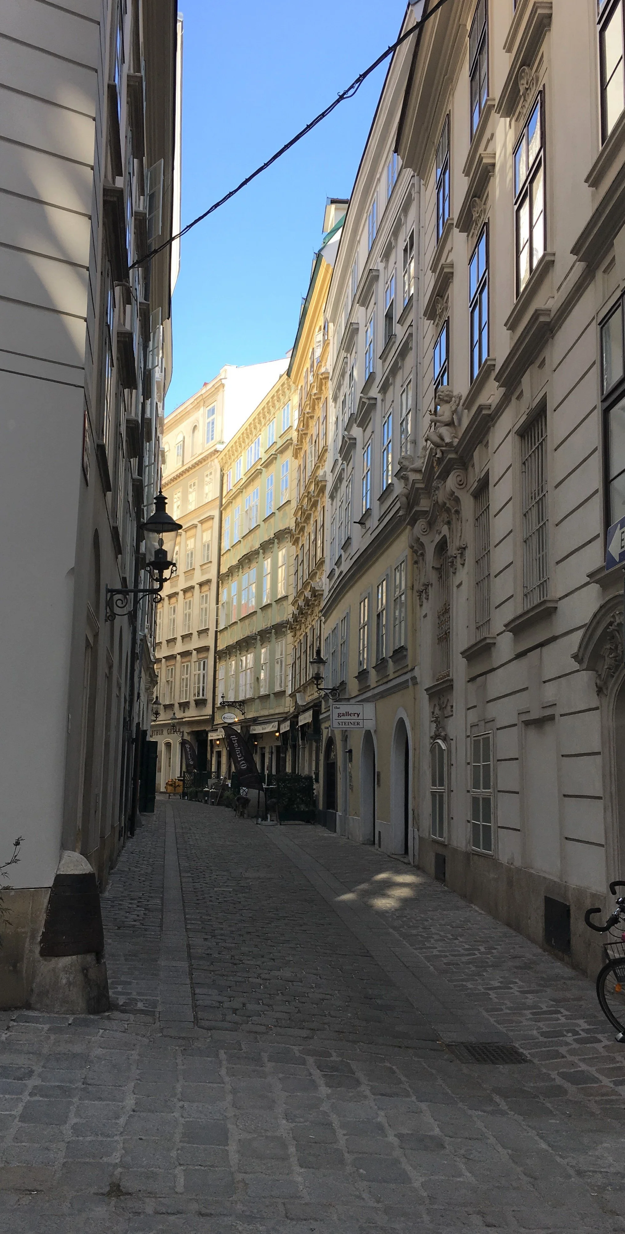 Ambling on a side street towards Café Sperl’s corner location, hovering at store window reflections to check for tails, I notice two short, intentionally discrete chalk marks on the yellow concrete wall framing the café’s mahogany entryway. Chalk marks, as every John le Carré reader knows, are indispensable espionage tradecraft used for maintaining operational security. They signal the location of a dead drop.