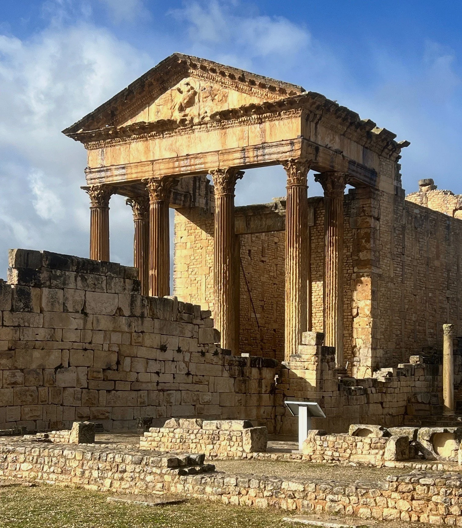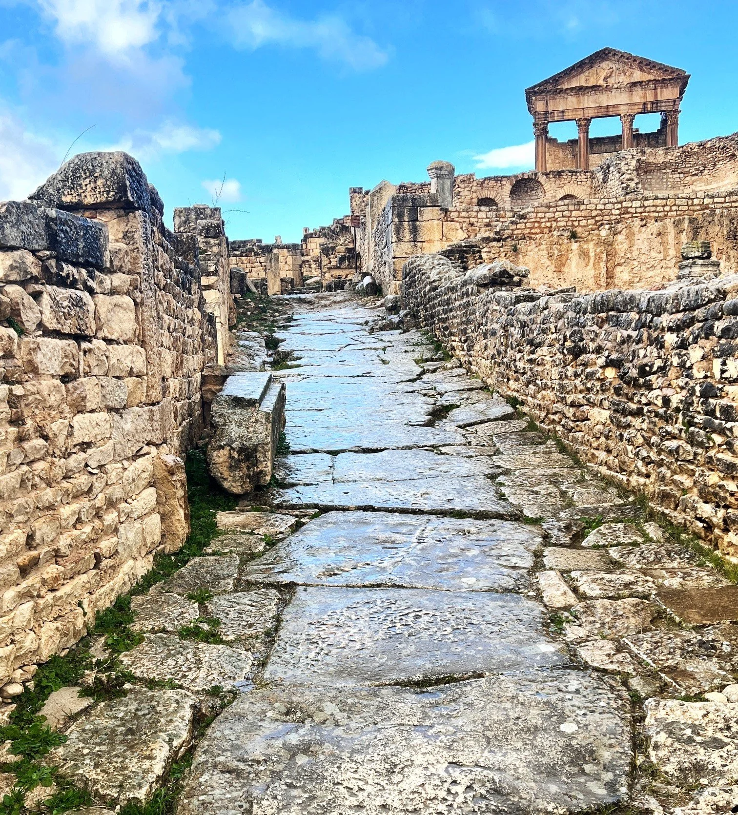 Alone, I’m exploring one of Tunisia’s UNESCO Roman ruins. Dougga, founded in the sixth century BC, has been a Berber, Greek and Italian settlement.