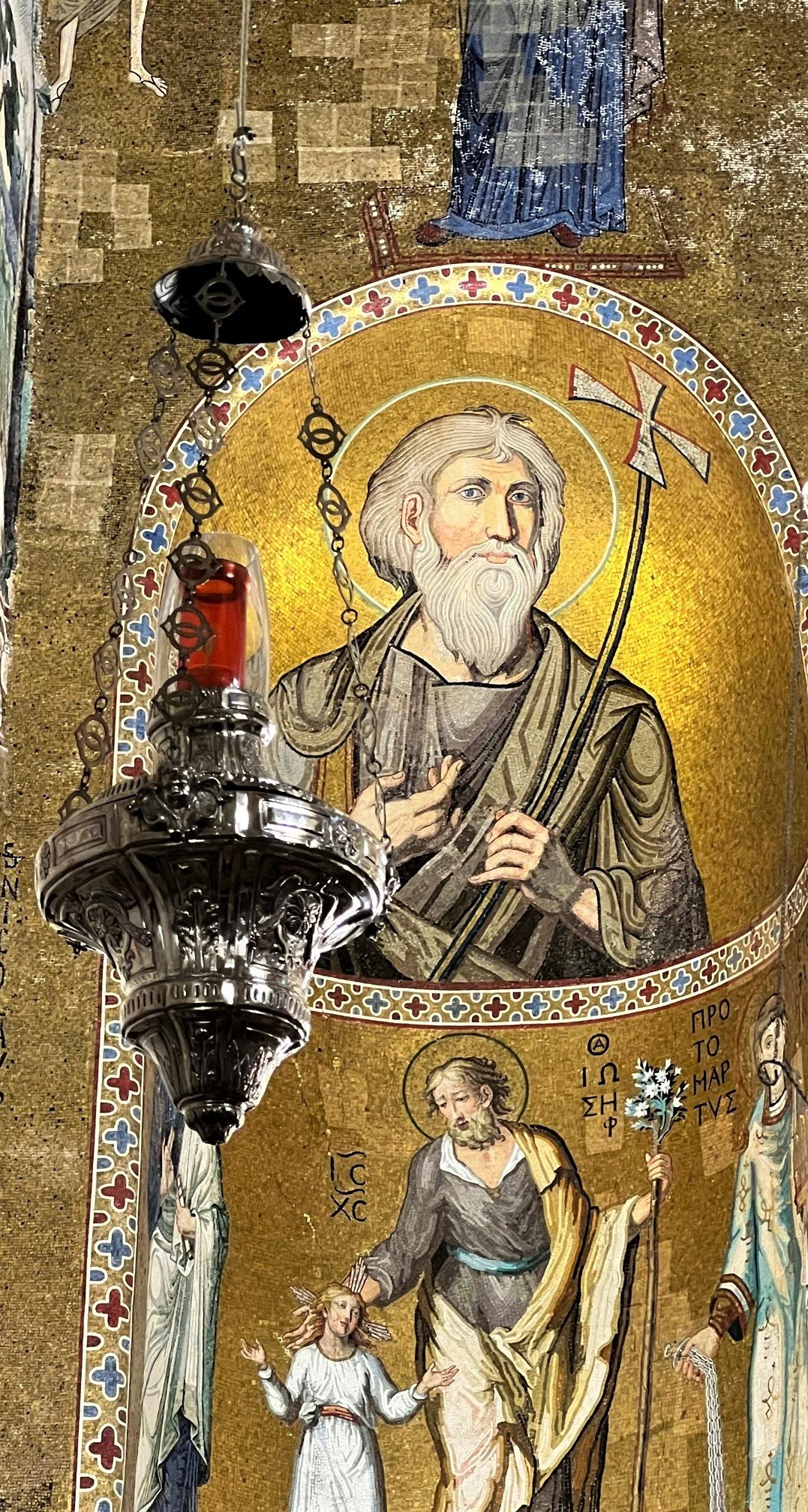Ignoring my tired feet, I can’t leave Palermo without taking in the mosaic opulence at La Mortorana church and the Royal Palace. Processions of stylized eagles, cheetahs, peacocks, lions, geese and griffins goosebump my skin. Shimmering kings, queens, saints and archangels overload me. As sensuous as any of my dad’s magazines.