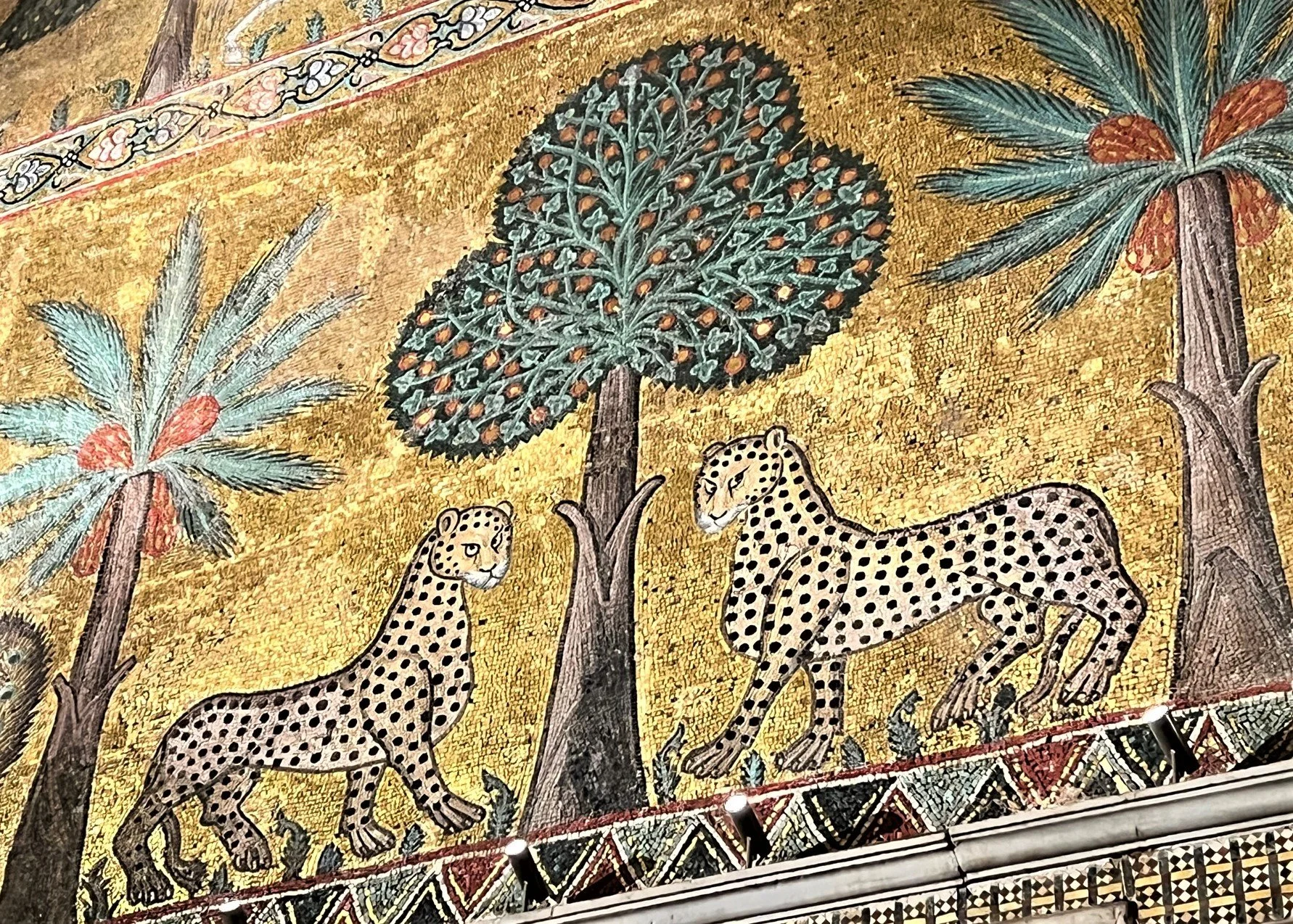 I head off to the Palatine Chapel, I crane my neck to focus on the church’s mosaic canopy. My gaze fixes on a mosaic message of universal care for all living things—a Noah’s Ark. A school trip to the zoo comes into focus, and then fades. For a split second, I’m sure the nave is spinning.