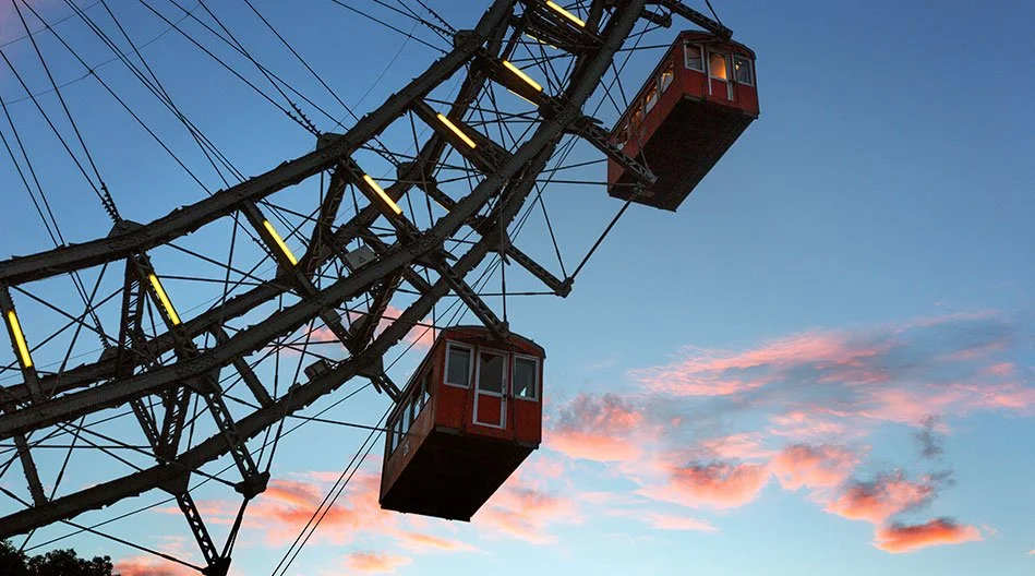 As we wait, the Riesenrad keeps rotating at a lazy two miles per hour. The mechanical sound, like time itself, is steady, unstoppable. Creaky like an old man shuffling down the halls of a retirement home.