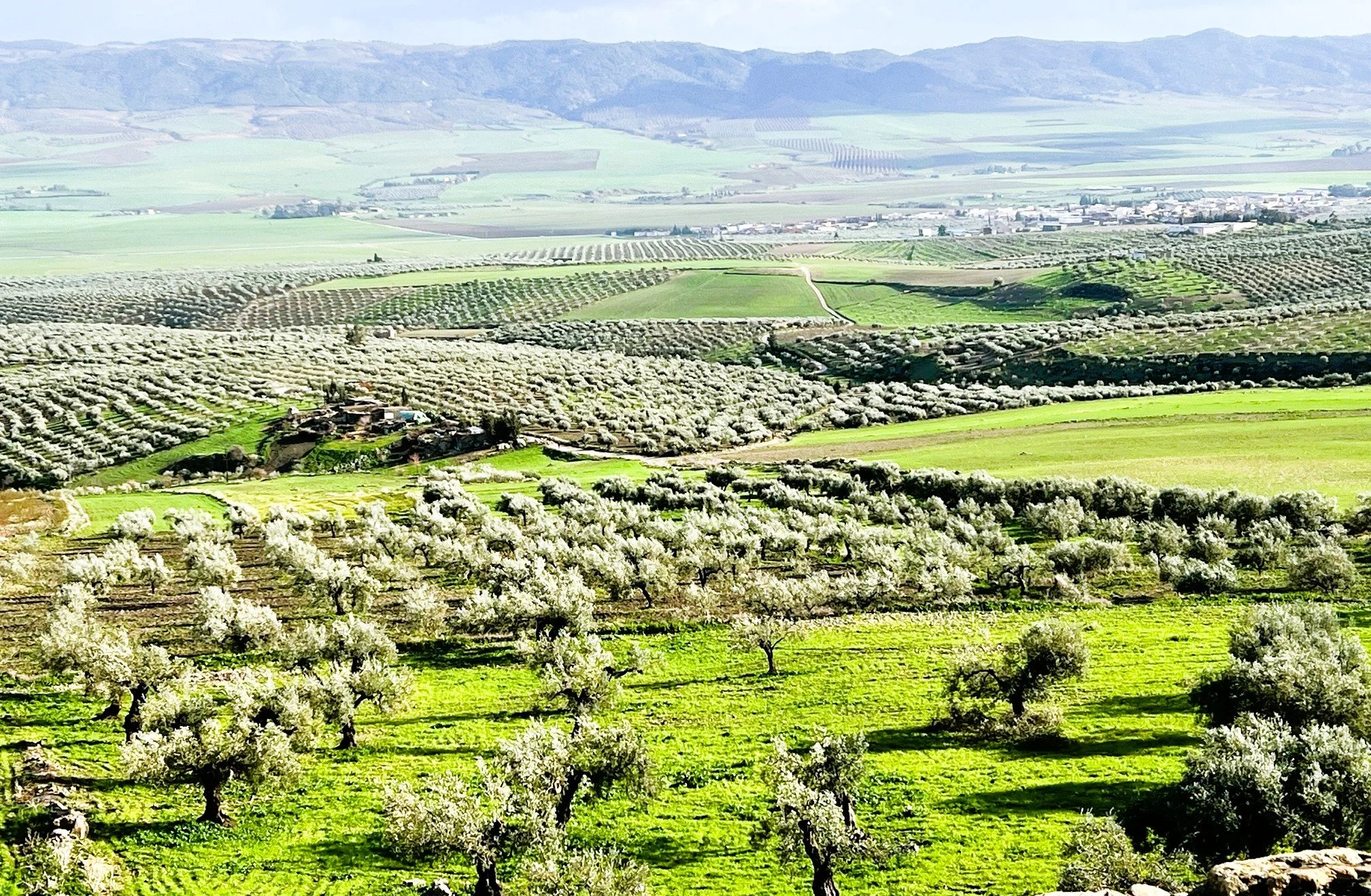 Leaving the city, on the way to Dougga, driving in the foothills of the Altas Mountains, the two-lane road plows past pastoral ag lands, goat herds mowing grassy fields and electric towers with white storks nesting on them. Groves of olive trees cultivated by the Romans march up and down gentle slopes.