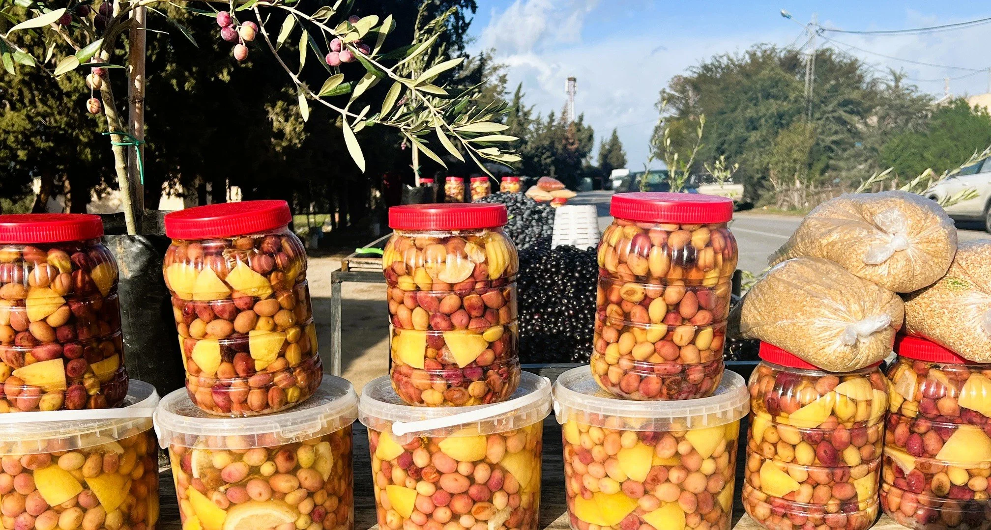 Roadside stands—often nothing more than a worn blanket spread out on the dirt shoulder—sell oranges, leeks, dates, honey, eggs, wrinkly black olives by the bucketful, olive oil in recycled gallon jugs, pickled vegetables, grilled meats. Here and on the ragged edges of cities and towns around the world, survival commerce finds a way to feed people.